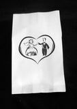 50 individual wedding cake bags with a waltzing couple design and a lovely touch from the special couple. These bags are perfect for gifting your wedding or anniversary cake at your reception for your guests.